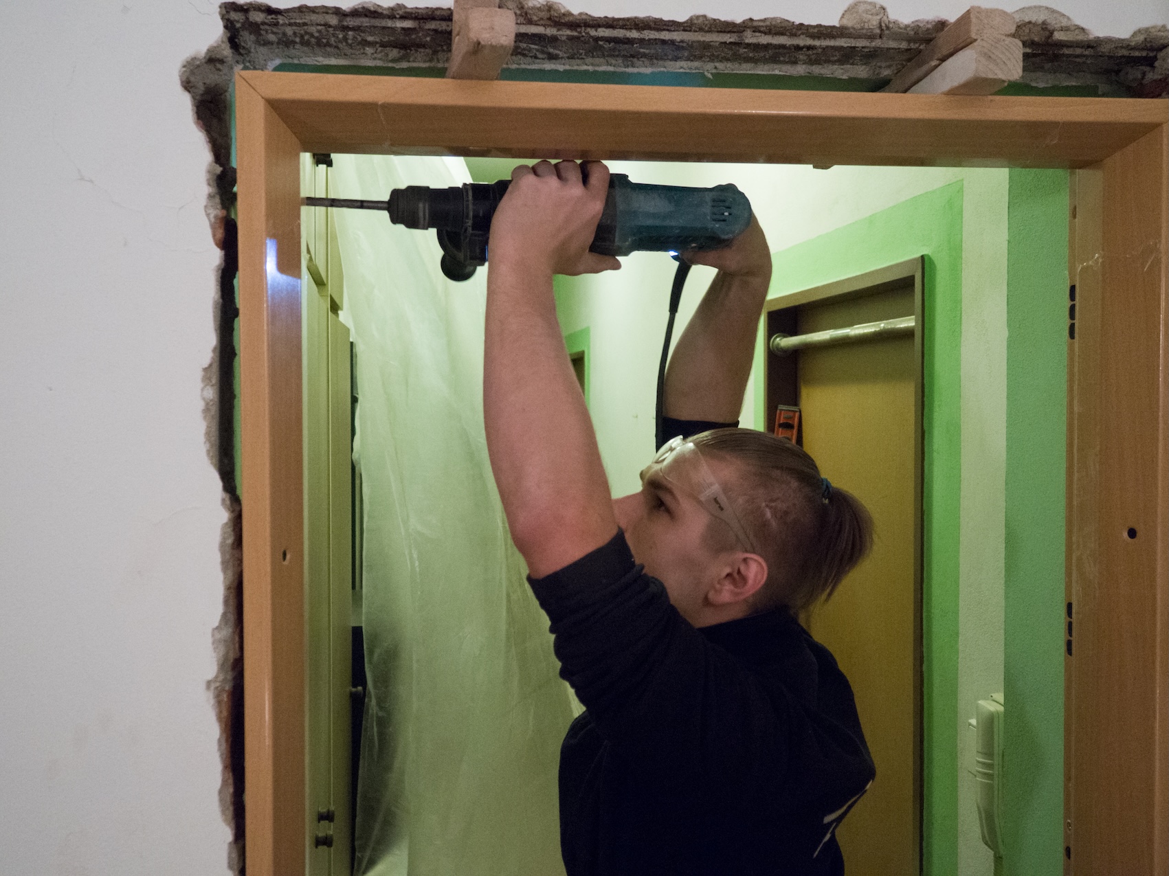 - Nejdříve se odstraní původní dveře a zárubeň a dle potřeby se upraví rozměry dveřního otvoru.